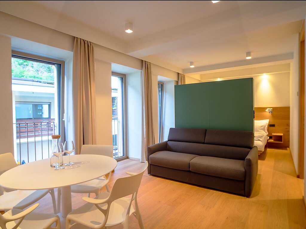 Und genau das schätzen die Gäste der Wellness Smart Suites besonders: Die hochwertig und luxuriös eingerichteten Wohnungen mit Küche und bequemen Betten in Kombination mit der zentralen Lage als idealer Ausgangspunkt für Ausflüge und Aperitivo in der Bozner Altstadt. Oder darf es ein Sundowner auf der Dachterrasse sein?