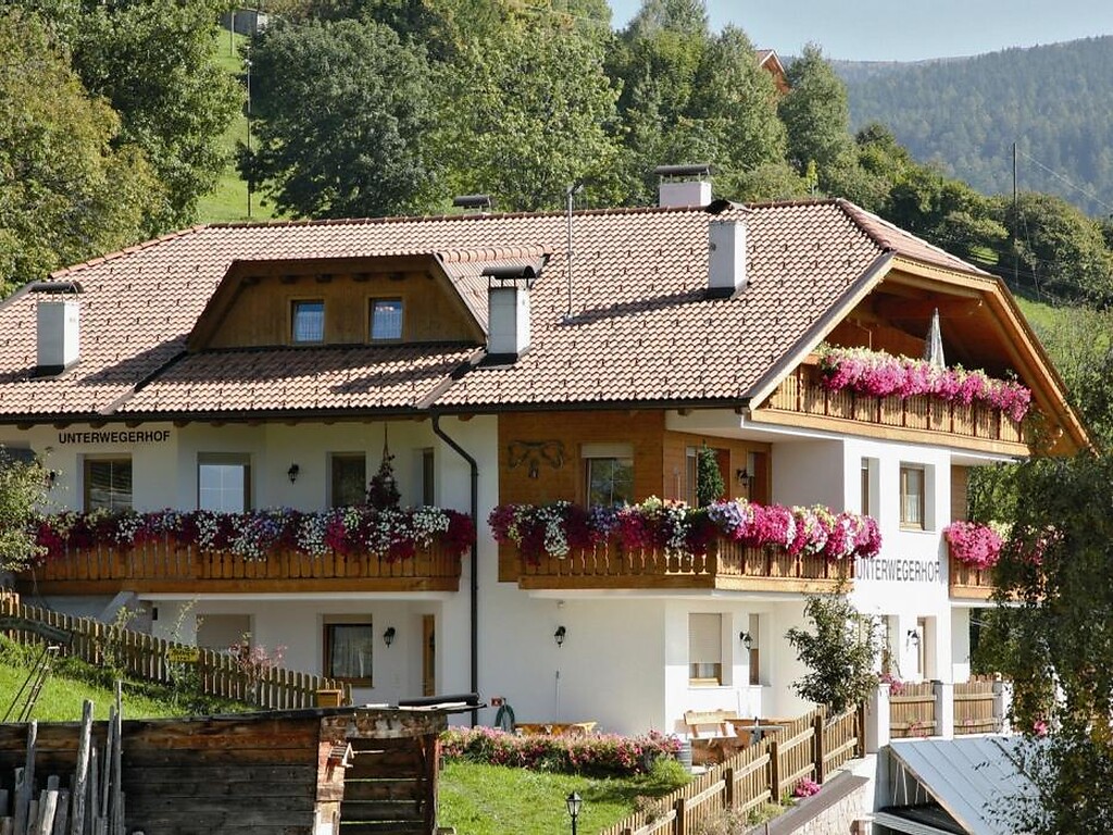 Der von Wiesen umgebene Unterwegerhof liegt mitten in Hafling Oberdorf, nur 3 km vom Ortskern entfernt. Das benachbarte Hotel Sonnenheim verfügt über ein Restaurant, das Gäste des Unterwegerhofs immer gerne besuchen und nur 5 Minuten entfernt gibt es sogar einen Reitstall für Ausflüge mit den behuften Fellnasen. Die Lage schenkt einen fabelhaften Ausblick ins Etschtal mit den Laugenspitzen im Hintergrund!