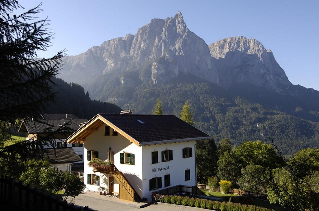 In der Ferienregion Seiser Alm–Gröden liegt das Haus Waldrand etwas außerhalb der beiden Dörfer Kastelruth und Seis. Besonders verlockend ist hier die große Liegewiese vor dem Haus, an die sich der Wald direkt anschließt. Viele Wandermöglichkeiten bieten sich in der näheren Umgebung zum Erleben an. Vom Haus selbst hat man einen wunderbaren Blick auf die Dolomiten mit dem Schlern als Hauptdarsteller, den Bozner Talkessel und den Ritten auf der gegenüberliegenden Seite des Eisacktals.