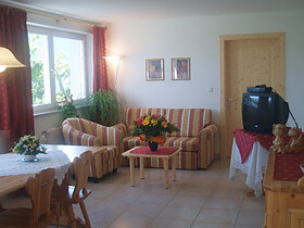Bestehend aus: einem Vorraum mit Garderobe, 2 großen Wandkästen, einem Schlafzimmer mit zwei orthopädischen Matratzen, ohne Fußteil, auf Wunsch noch ein weiteres kleines Schlafzimmer, einem Wohnraum mit gemütlicher Sitz- und Essecke, ausziehbare Couch für 2 Personen, komplett eingerichtete Kochnische mit Filter-Kaffeemaschine, Abzugshaube, Mikrowelle, neue geräumige Dusche/ WC, Waschbecken mit großer Ablagefläche, Fön, CD-Player, großer Flachbildschirm-Digital-TV und Zimmertresor, WIFI.