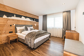 Die Wohnung Ciamorc (dt. Gämse) ist in hellem Altfichtenholz eingerichtet und verfügt über eine große Terrasse mit Liegewiese.