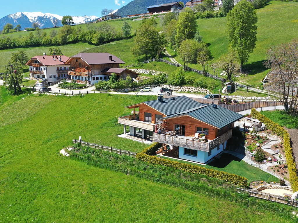 The Chalet Frieda awaits its guests right at the entrance to the Puster valley in the little hamlet of Spinges. Located in a very sunny and quiet position on the beautiful Alpine plateau, the village centre is within a few minutes’ walking distance, while the town centre of Mühlbach can be reached after 3 km. The chalet is surrounded by a full 9 hectares of meadows and it features a little garden equipped with loungers and a gas barbecue. The beautiful mountain views range from the main Alpine ridges to the Dolomites and delight the guests holidaying at the chalet.