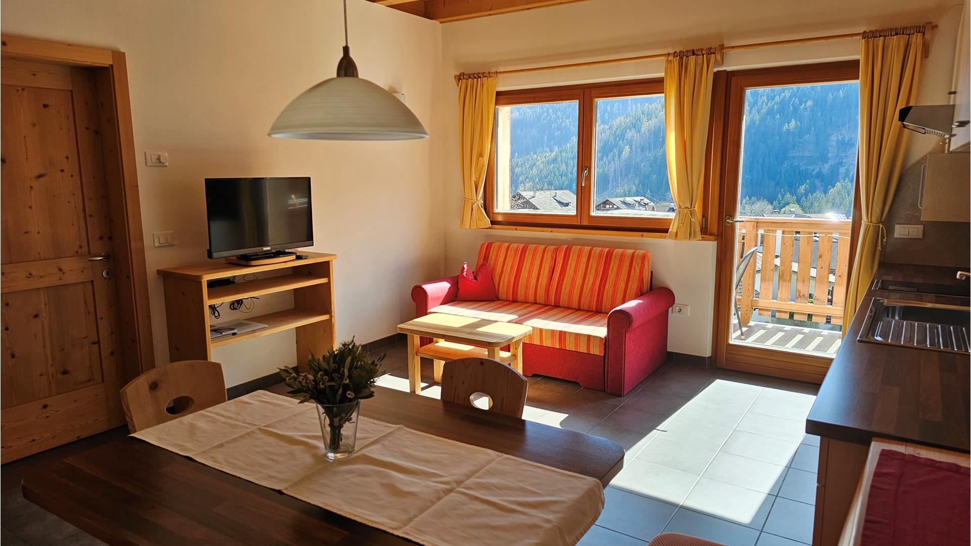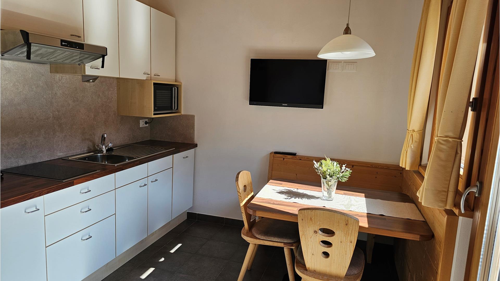 The cosy and comfortably equipped holiday apartments are furnished with local, untreated spruce wood furniture. A bread roll delivery service is available.