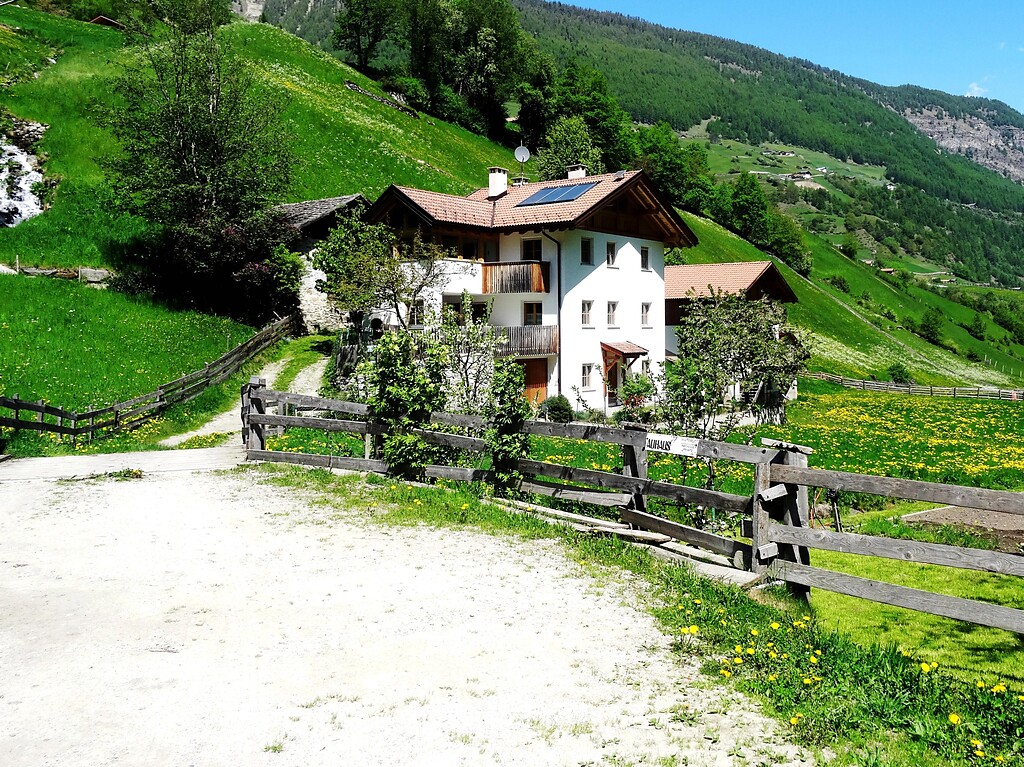 Beneath the village of Martell lie Auhaus holiday flats in a lush green meadow next to Saugbächlein stream. Sheer rest and relaxation is the name of the day here in the nature park, taken care of by sun loungers ready and waiting and the quiet splashing of two small fountains next to the house vegetable garden. You can relax and unwind to unencumbered views of meadows and woodland, fields and rocky crags and mountain peaks, some of which still covered in snow.