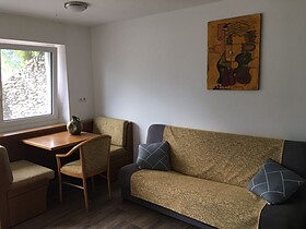 Single bed, Double bed, Sofa bed, Terrace, Garden, Anti-allergic room, Handicapped accessible, Bed linen provided, Non-smoking apartment, Eat-in kitchen, Coffee machine, Dishwasher, Electric cooker, Microwave, Cutlery provided, Hob, Water boiler, Oven, Shower/Bath tub, Bidet, Hair dryer, Towels, Bathtub, Washing machine in the apartment, TV, Satellite/Cable, WLAN, Cleaning upon request, Final cleaning included, Season rental possible, Main building, Panoramic view
