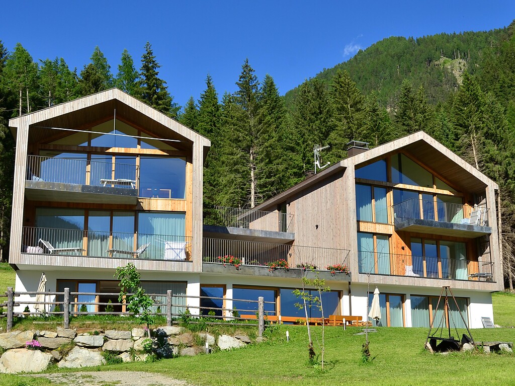 The Sunnig Nature Apartments are located in St. Martin in the Gsieser valley, surrounded by sunny meadows and fields. Out front are a large playground and sunbathing lawn (with barbecue facilities), ensuring a relaxing start to your day. Those wanting a more active holiday can explore the wide range of rustic mountain huts on a leisurely hike (even in winter), enjoy a mountain bike tour or even scale the impressive Dolomite peaks. For more winter fun, the apartments are located directly on a cross-country ski trail. The stylish Sunnig Nature Apartments, with their abundant wood furnishings, also offer holidaymakers breathtaking views across the valley to the peaks of the Prags Dolomites.