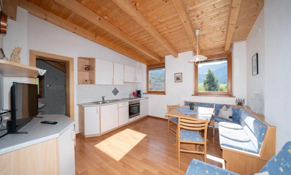 Landlady Christine Malfertheiner, supported by husband Johann Trocker and children Florian and Annalena, are delighted to welcome their guests to the Haus Schönau. Christine looks after the house, garden and particularly the herb garden, which is the source of her delicious mint syrup. The establishment’s closeness to nature is demonstrated by the use of solar heating and wood, while guests appreciate the family atmosphere, quiet location and spacious holiday apartments.