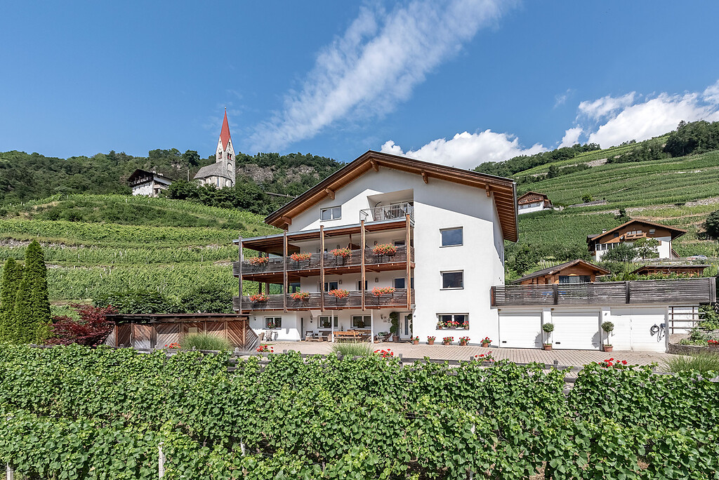A San Pietro Mezzomonte, una piccola località di Velturno, trovano spazio tra i vigneti della zona compresa fra Chiusa e Bressanone gli Appartamenti Toni. Dal terrazzo della casa si può ammirare la rigogliosa valle fino a scorgere la chiesetta di San Pietro Mezzomonte.