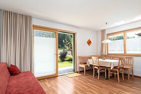 Letto matrimoniale, Letto aggiuntivo, Lettino, Divano letto, Terrazza, Giardino, Camera antiallergica, Senza barriere architettoniche, Soggiorno separato, Biancheria da letto disponibile, Cassaforte, Appartamento non fumatori, Cucina abitabile, Macchina da caffè, Piano cottura elettrico, Stoviglie, Piano cottura, Doccia / bagno, Bidet, Fon, Asciugamani, TV, TV satellitare/via cavo, WLAN, Pulizia su richiesta, Pulizia finale inclusa, Edificio principale, Lato sud