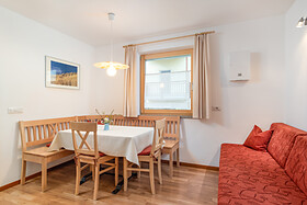 L'appartamento SASS RIGAIS ha una camera matrimoniale (eventualmente con terzo letto/culla aggiungibile); un bagno con doccia/water/bidet; un soggiorno (vista sulle Odle) con cucinino, angolo per mangiare, divano-letto, TV; terrazza.