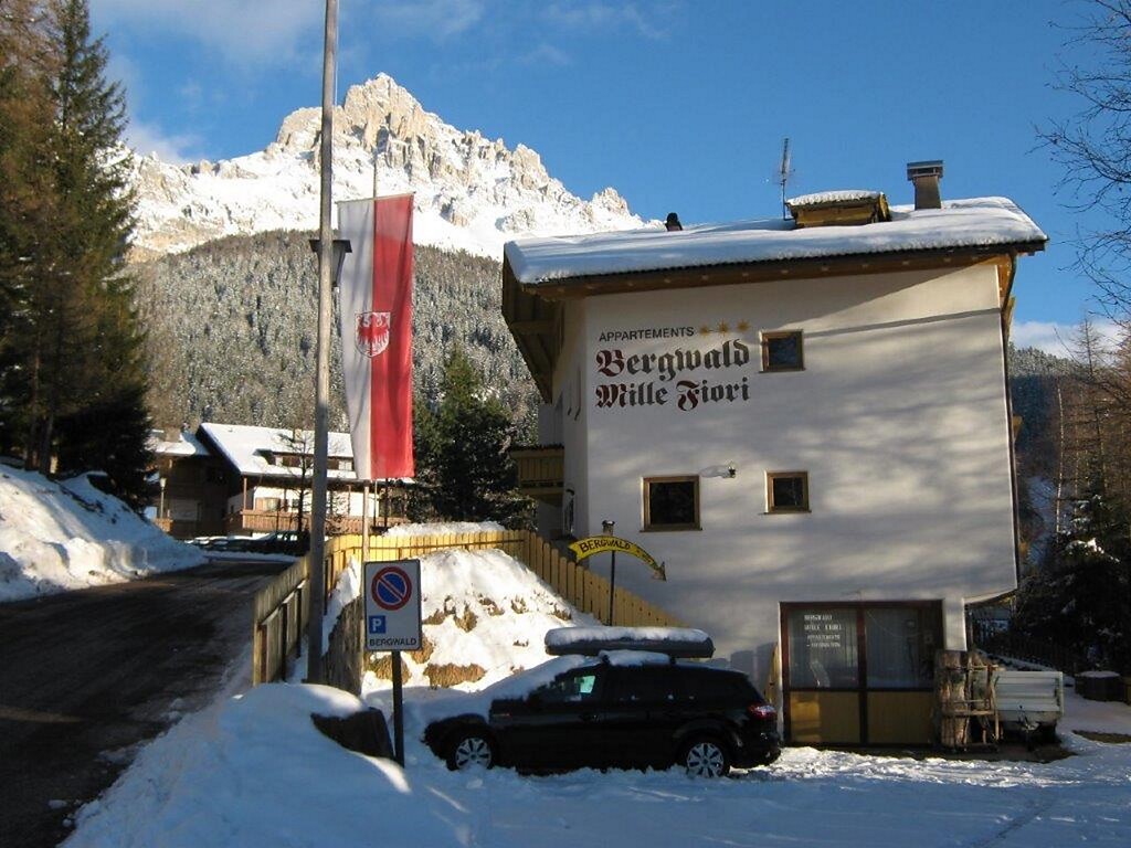 Nel cuore di Obereggen, a ca. 100 metri dagli impianti di risalita dello Ski Center Latemar, si trova Casa Bergwald Mille Fiori nella periferia meridionale del noto “Lärchenwald”. Circondata da prati di montagna di un verde intenso, regala una vista mozzafiato su Latemar, Pala di Santa, Corno Nero e Corno Bianco, nonché Catinaccio e Massiccio dello Sciliar.