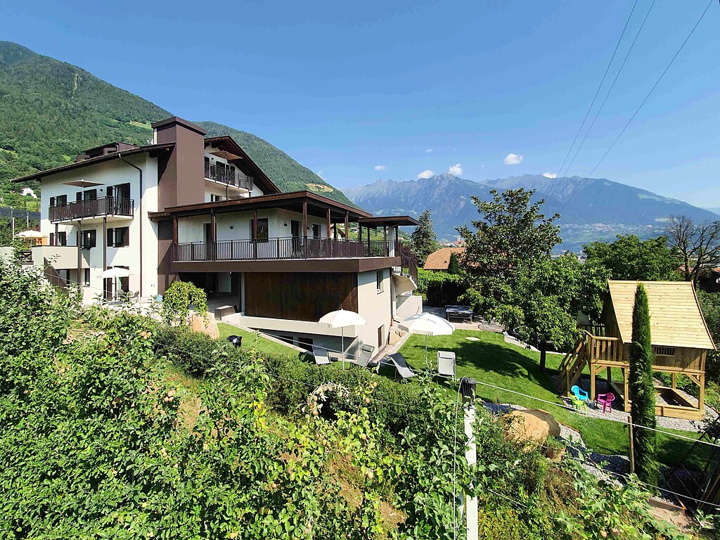 Al confine a sud di Marlengo Casa Sonnegg offre un’oasi di riposo tra una miriade di frutteti. Qui il sole splende sul giardino e sull’ampio prato, che offre ai bambini tanto spazio dove giocare. Lo sguardo si posa sulla conca di Merano fino ad arrivare alla Val d’Adige e all’Oltradige, e ancora su frutteti e vigneti, sul Monte di Marlengo e sul Castel Monteleone.