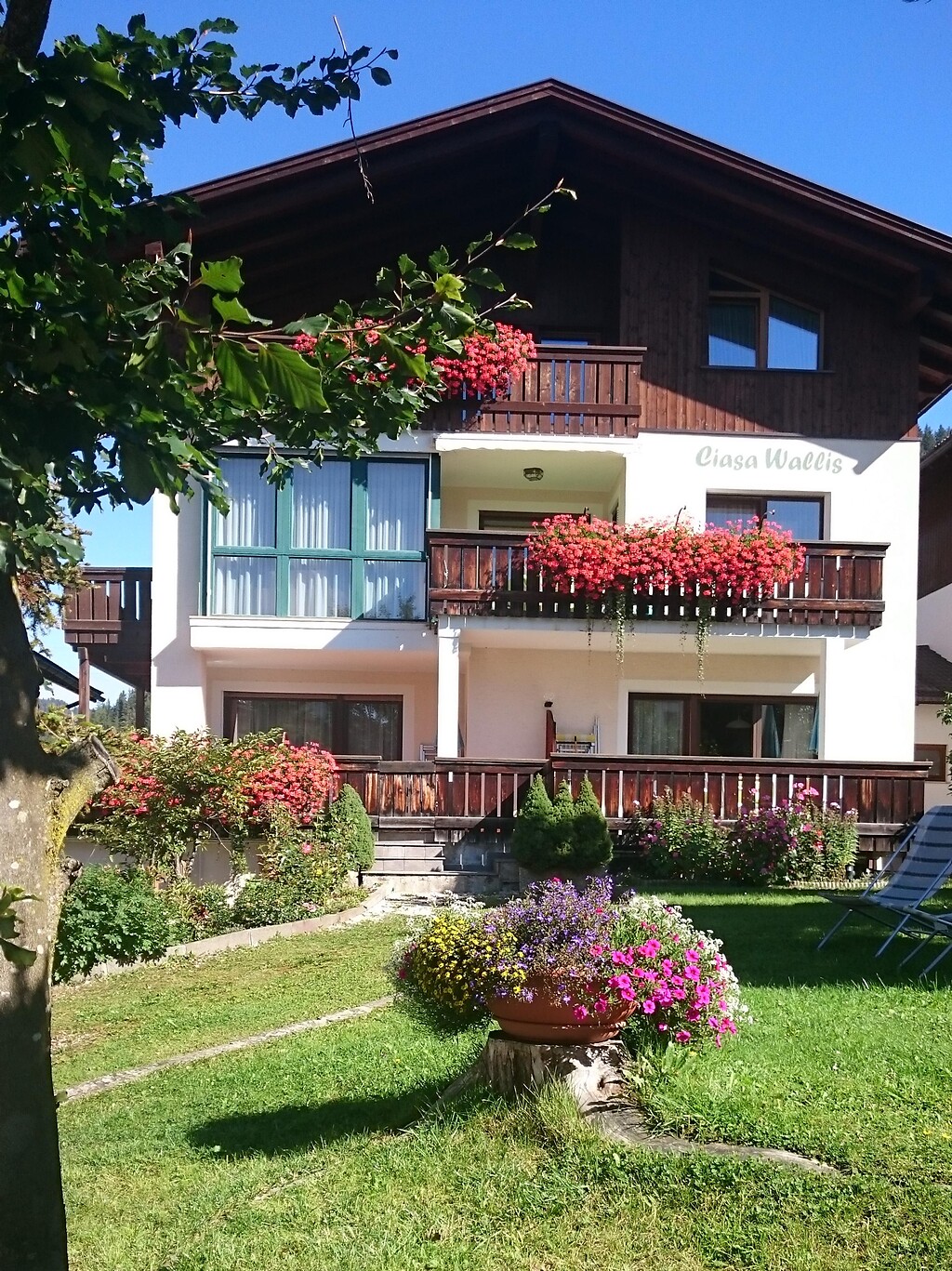 Casa Wallis si trova a San Leonardo in Val Badia, a soli 300 m dall'impianto di risalita. Per fare un'escursione si può però anche partire a piedi, perché i sentieri iniziano vicinissimi alla casa. Dopo un'intensa giornata di escursione l'ideale è rilassarsi sulle sdraio del grande giardino, ammirando il magnifico panorama sulle montagne circostanti.